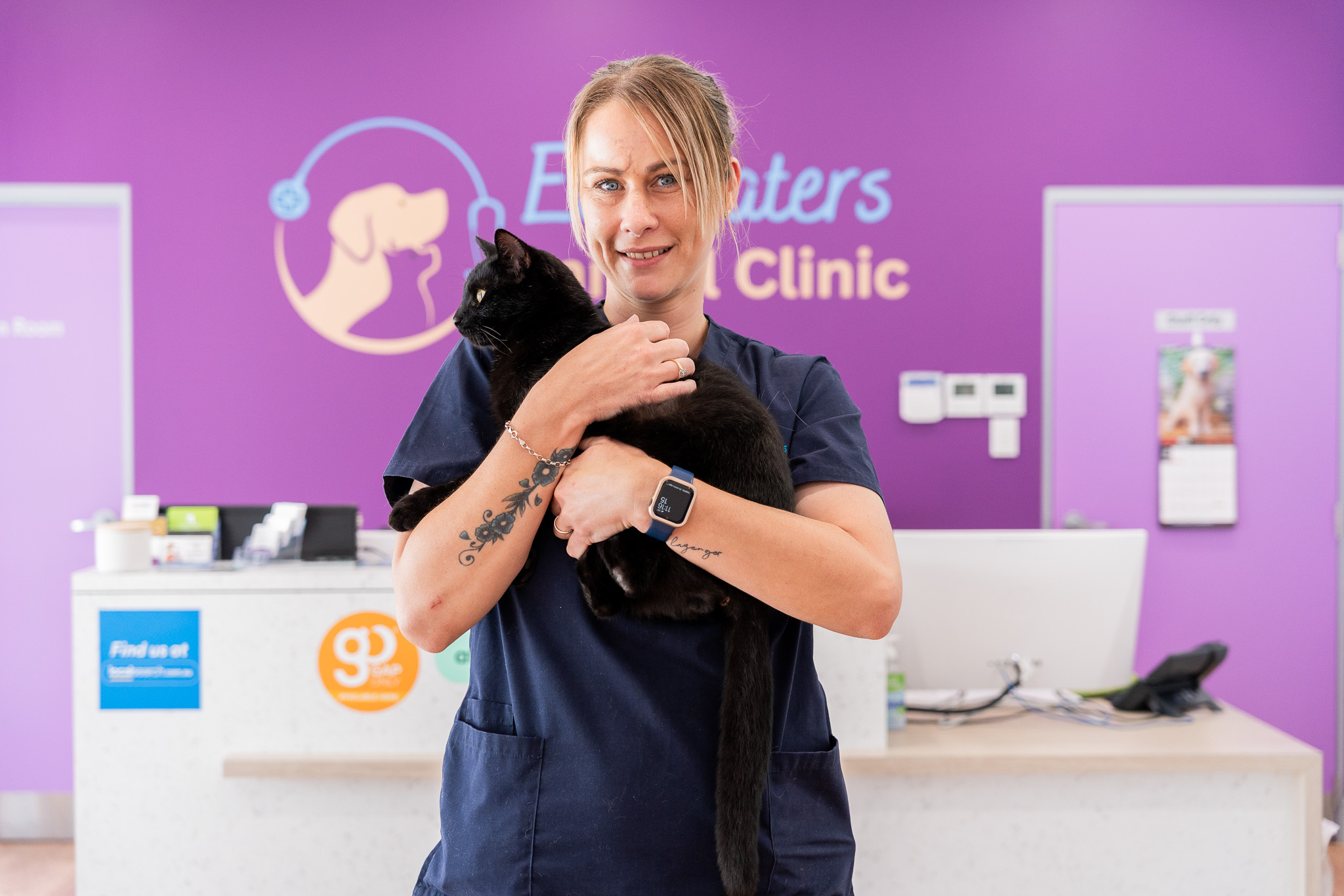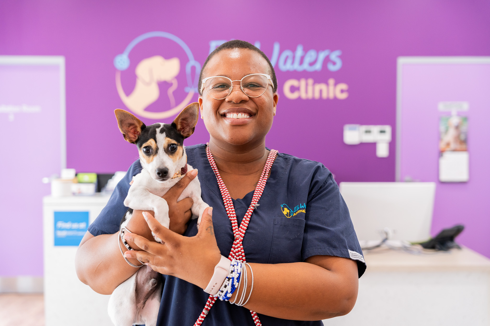 If she could, Promise would adopt every stray animal that walks through the doors of the clinic. She currently has two cats (Grace and Elijah) who came into the clinic as stray cats as well as two dogs, Puzzle and Brené.